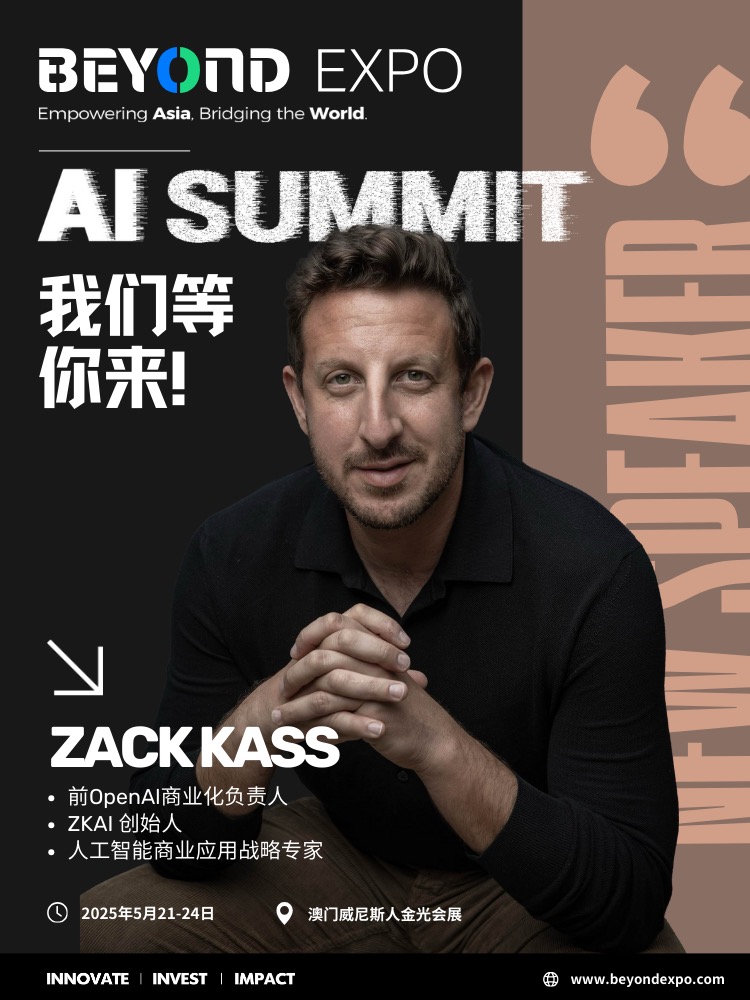🤖全球人工智能商业应用战略专家,前 OpenAl 商业化负责人 Zack Kass 确认出席 BEYOND Expo 2025 AI 峰会!